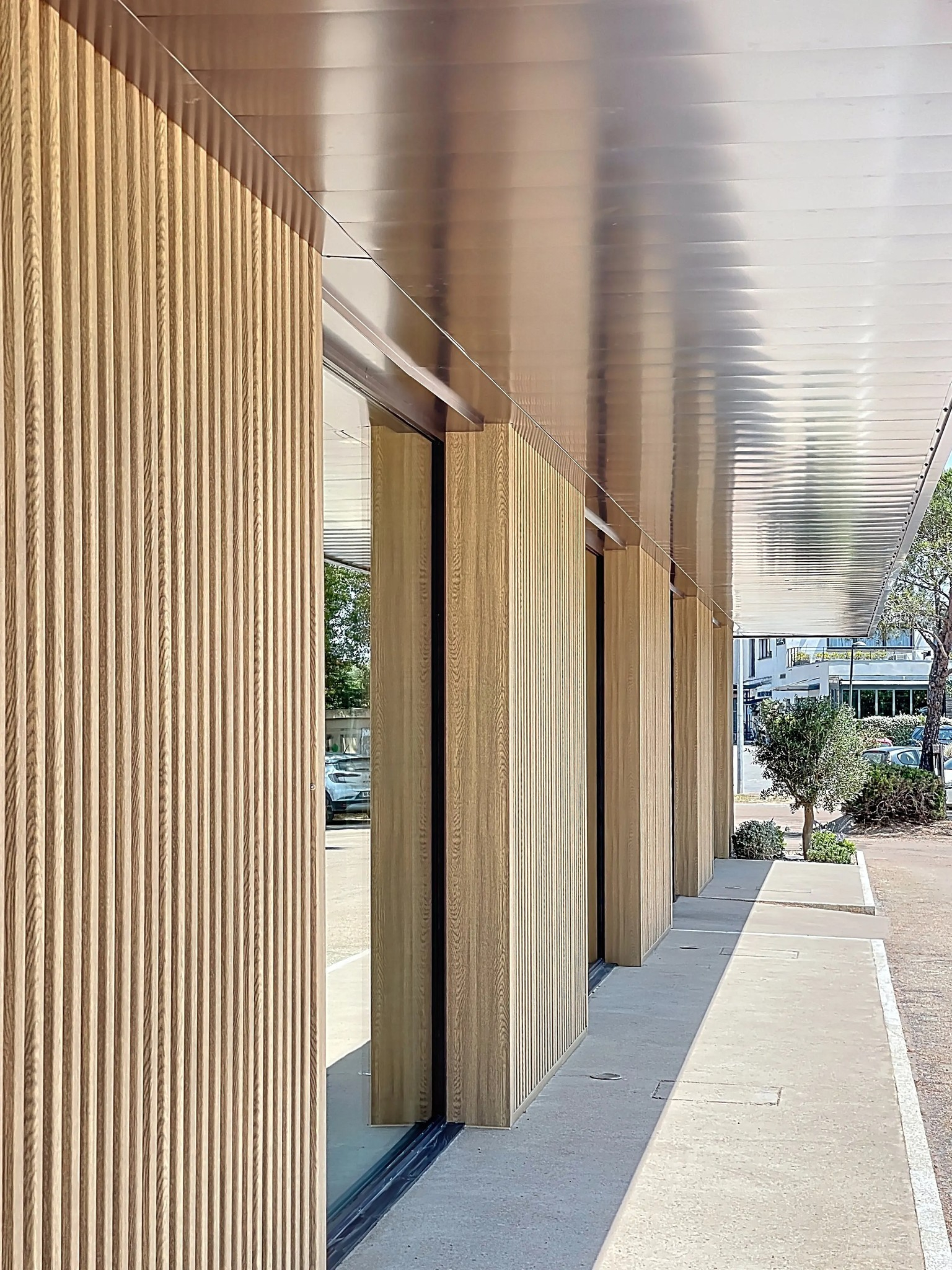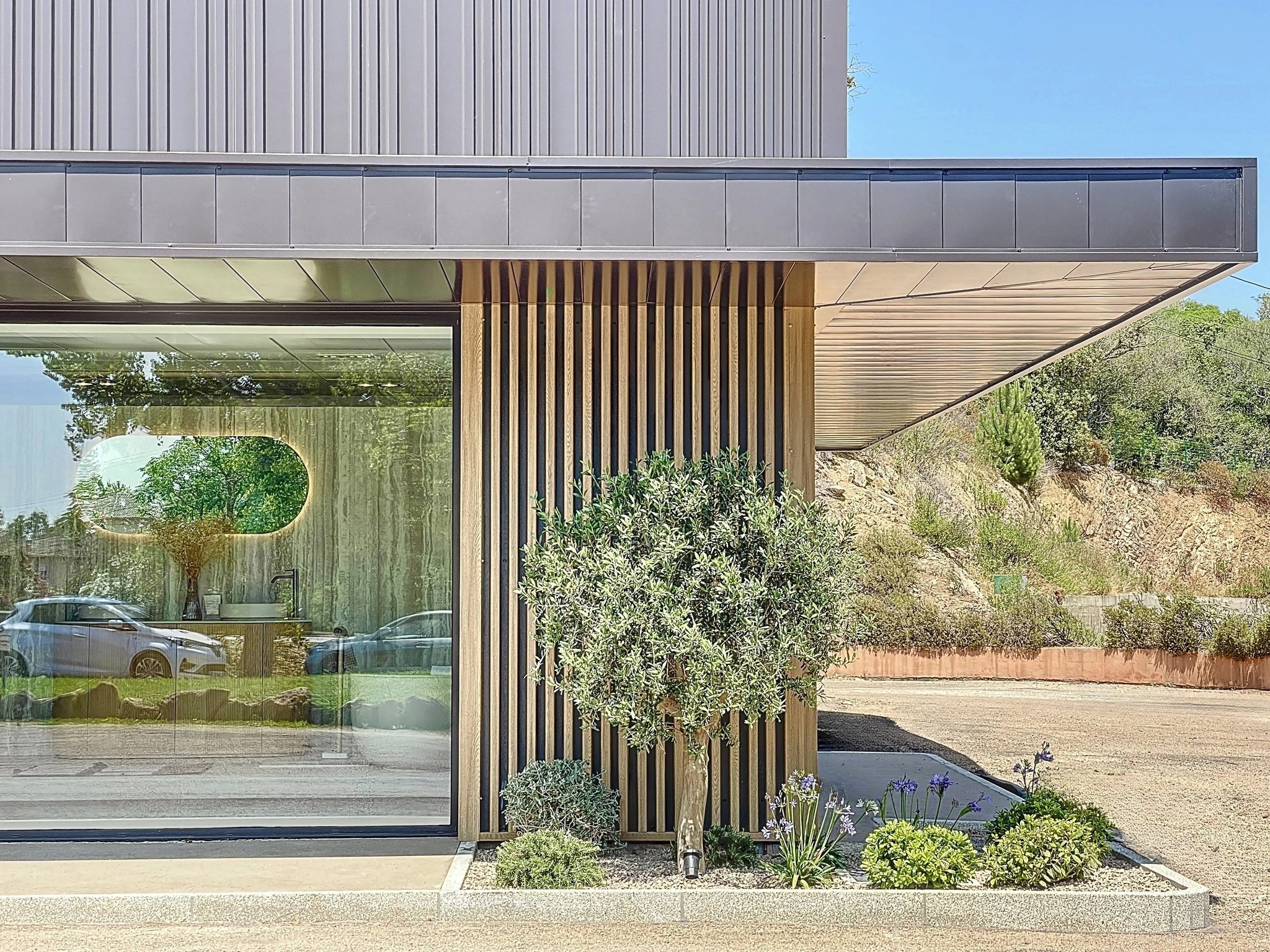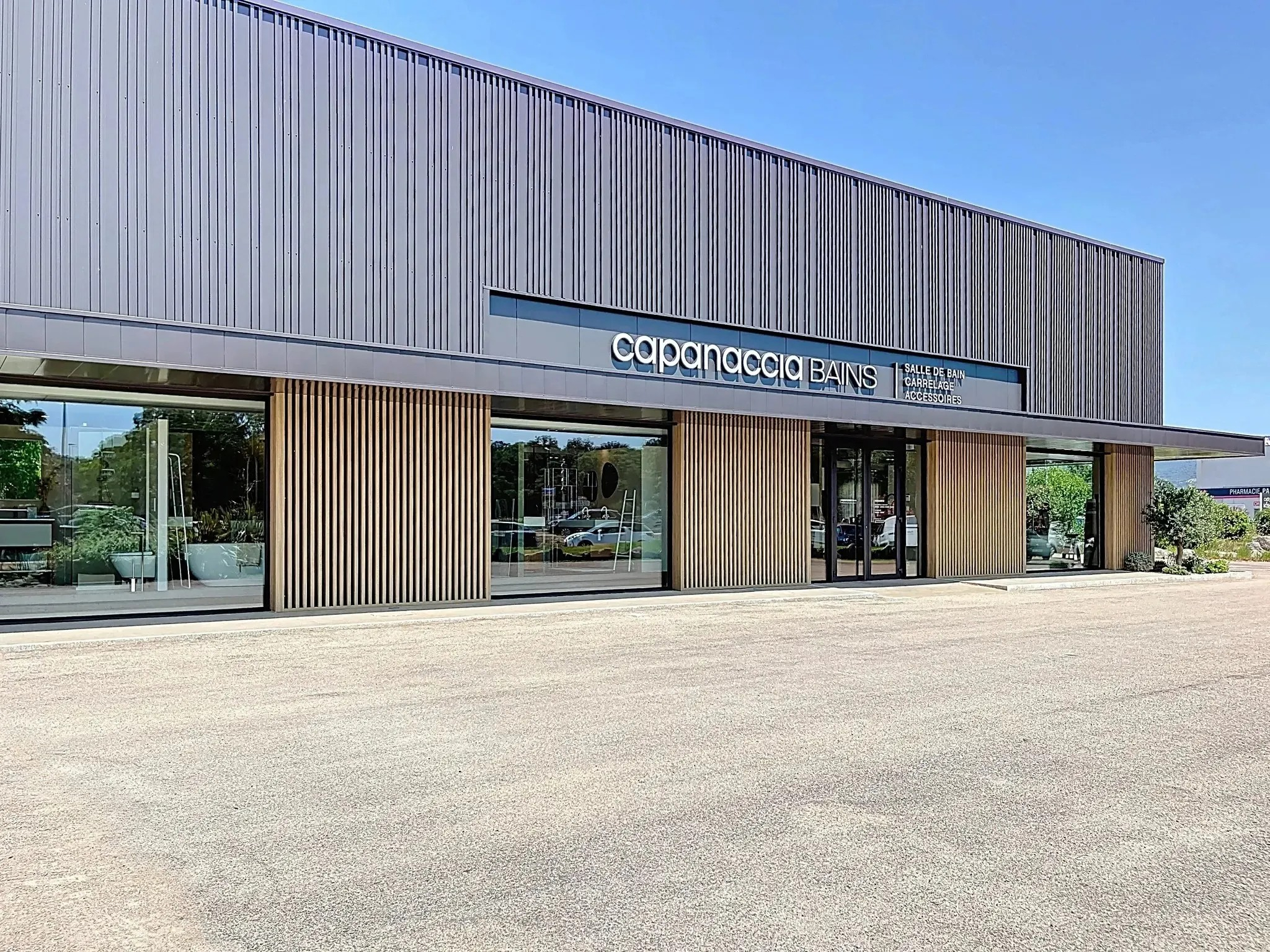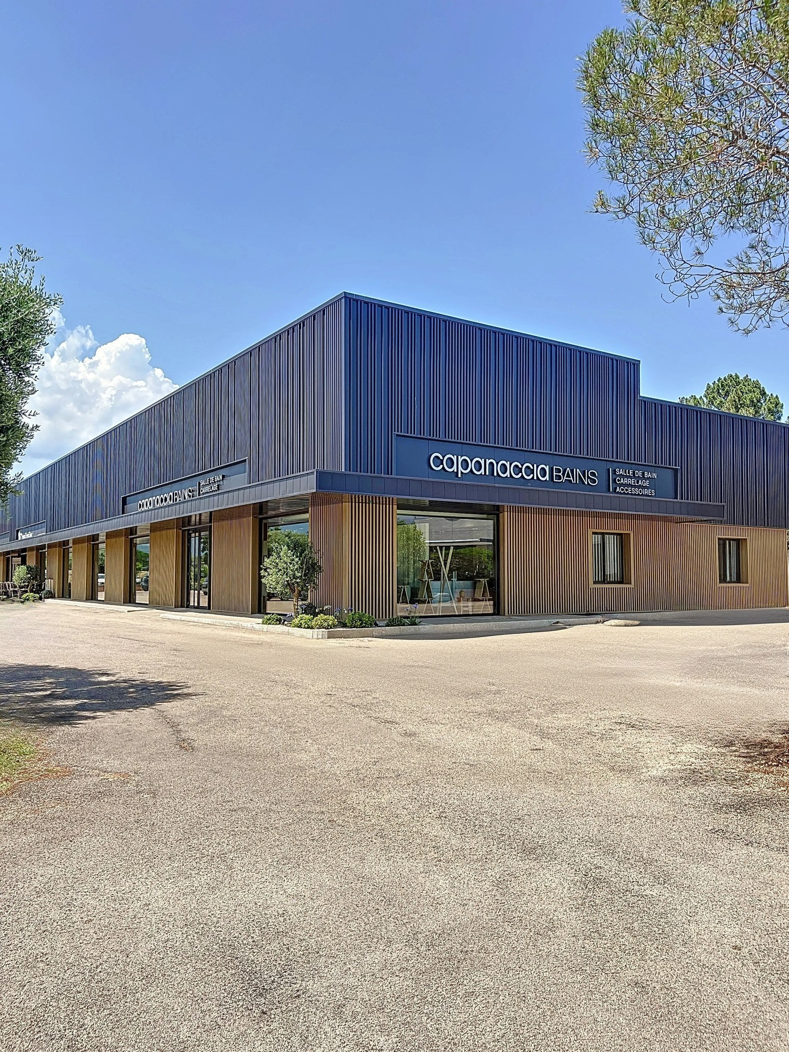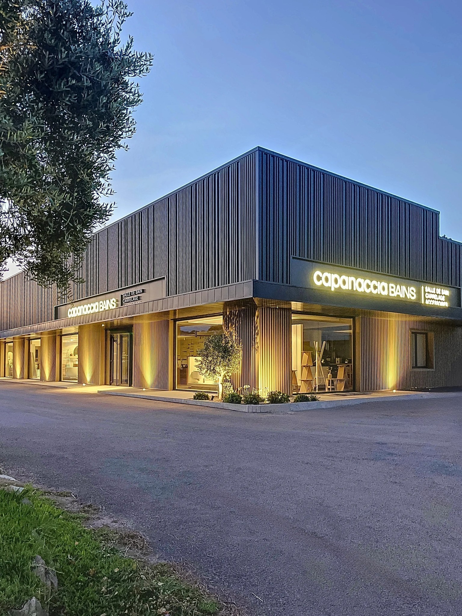 Après la réalisation du show-room en 2017 et 2022, l’entreprise nous a confié la rénovation de son enveloppe extérieure. Objectif : redonner une échelle humaine à un hangar commercial.