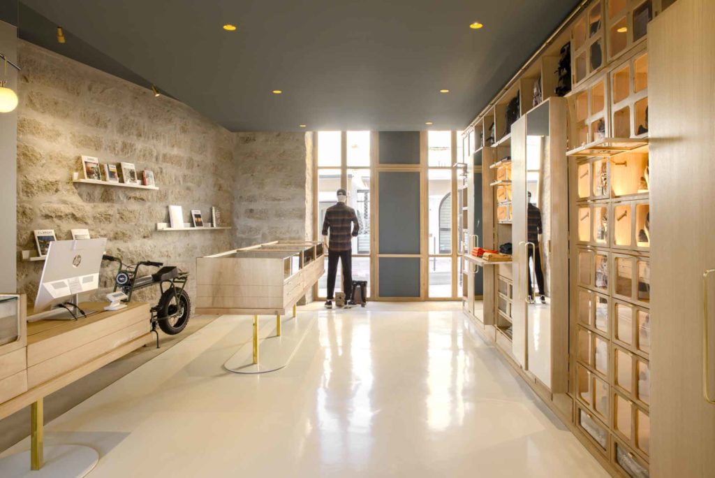Ce concept store s’inscrit au rez-de-chaussée d’un immeuble en granit de la vieille ville, dans un espace traversant de 60m2. Il s’articule autour d’un grand dressing en chêne clair inspiré des meubles de mercerie et des malles de voyage. 2020